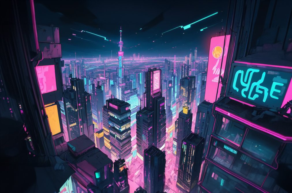 Our journey starts on the lit streets of Creative City, a future-forward metropolis where the impossible is pretty much at your fingertips. Neon lights are vibing up the sidewalks and buildings, a complete color show.