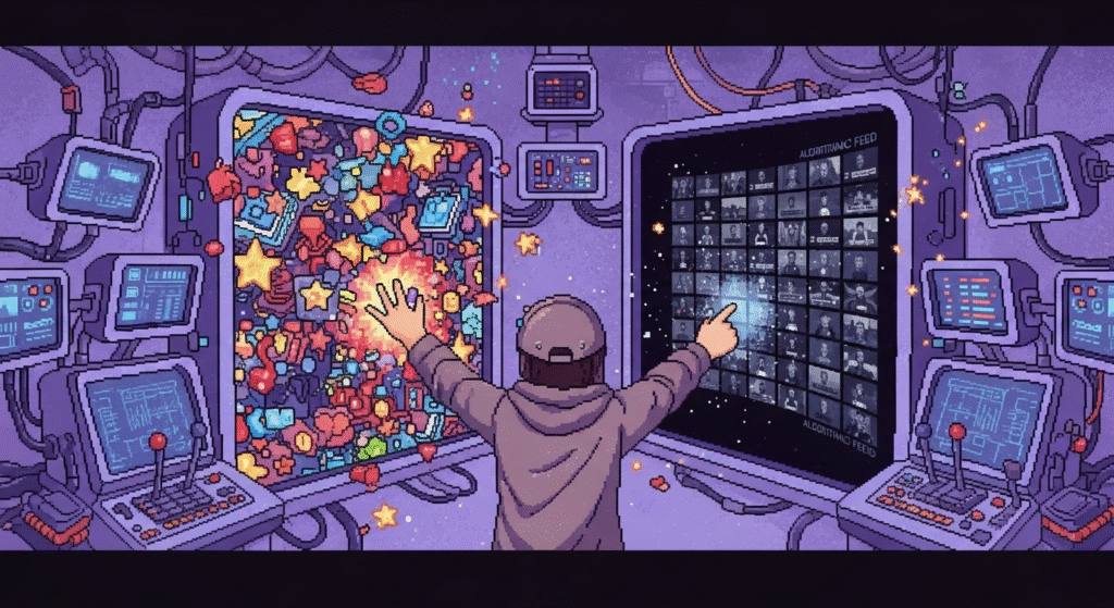 Sentimos o abraço de polvo dos algoritmos: quente, conveniente… e um pouco apertado. Hiper-personalização poupa tempo, mas pode podar a curiosidade. Resultado? Feeds previsíveis, imaginação anêmica e…